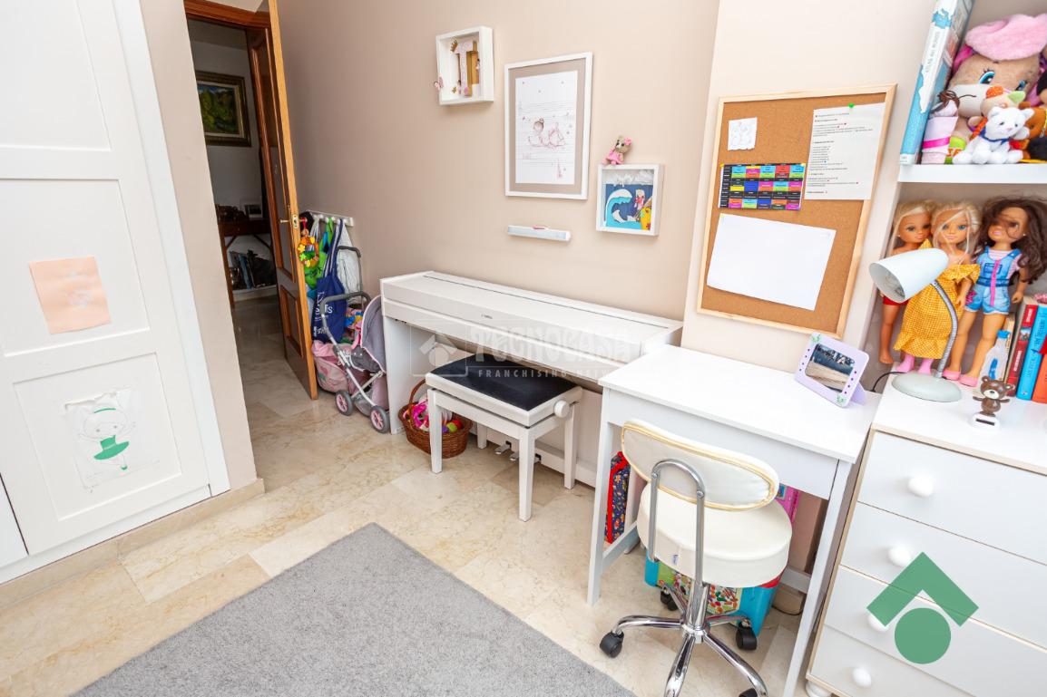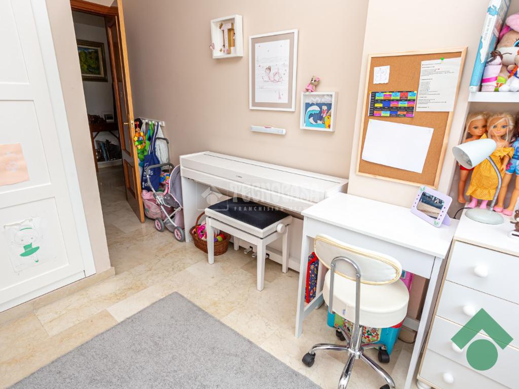La vivienda se distribuye en tres amplios dormitorios con armarios empotrados y dos baños completos, uno de ellos en suite, ofreciendo una distribución funcional y cómoda.